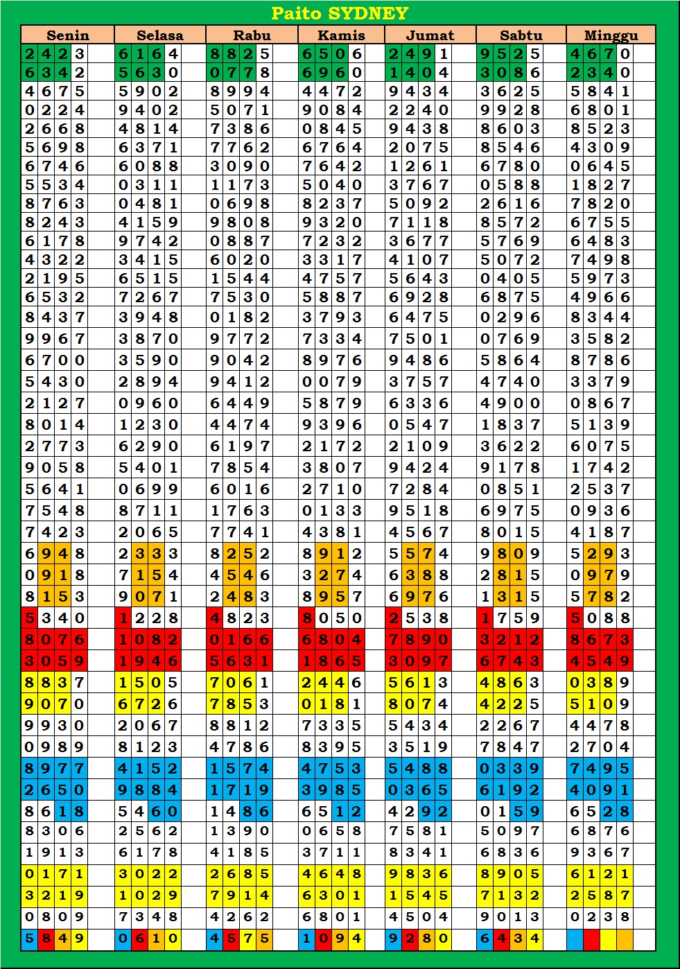 | PAITO WARNA SYDNEY 4D HARIAN |