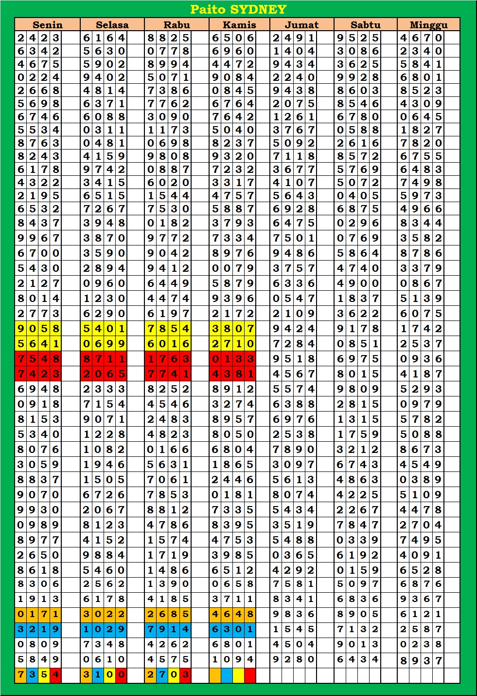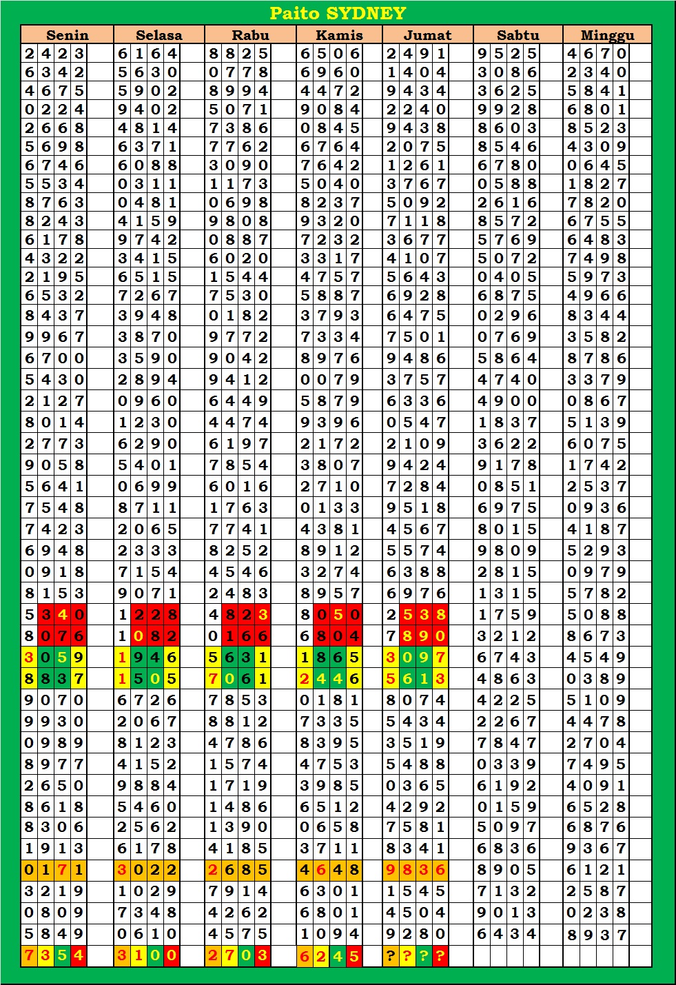 | PAITO WARNA SYDNEY 4D HARIAN |