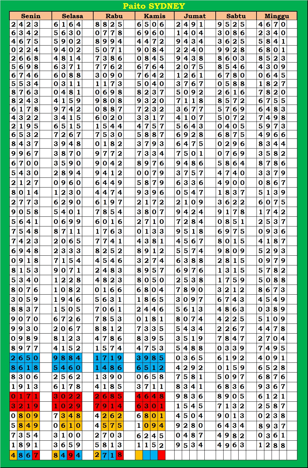 | PAITO WARNA SYDNEY 4D HARIAN |