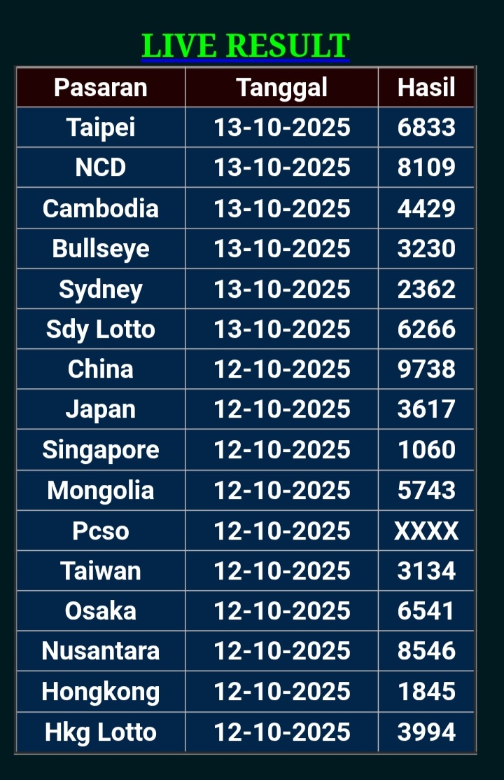 Prediksi Ini Berubah secara otomatis sesuai hari dan result pasaran masing-masing. Untuk melihat prediksi sebelumnya klik tombol nomor hitam diatas