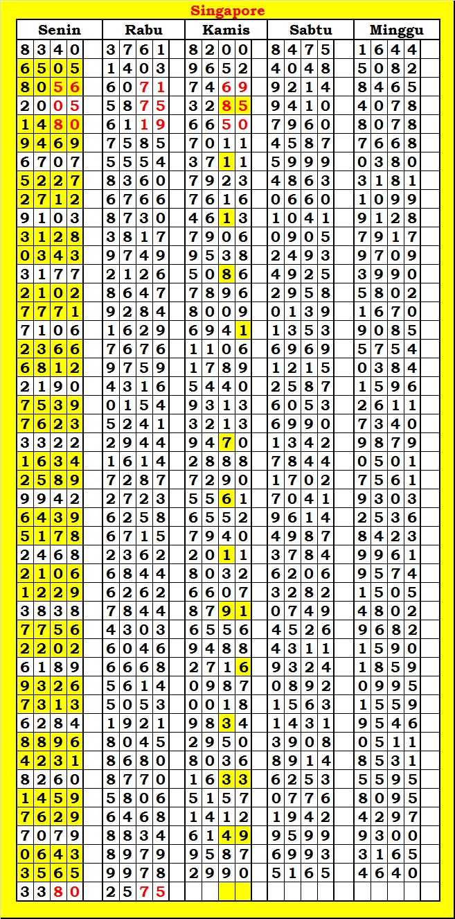 MASTER SINGAPURA Kamis, 19-02-2026 Merupakan Prediksi Otomatis yang menggabungkan Metode Kalender Togel Dengan Rumus-rumus kontrol yang sudah terbukti keakuratanya.Gunakan Aplikasi Rekap untuk mendapatkan LN TOP. Harap Maklum Jika kadang meleset MASTER SINGAPURA kita. Jadikan ini sebagai perbandingan saja dan tetap UPS