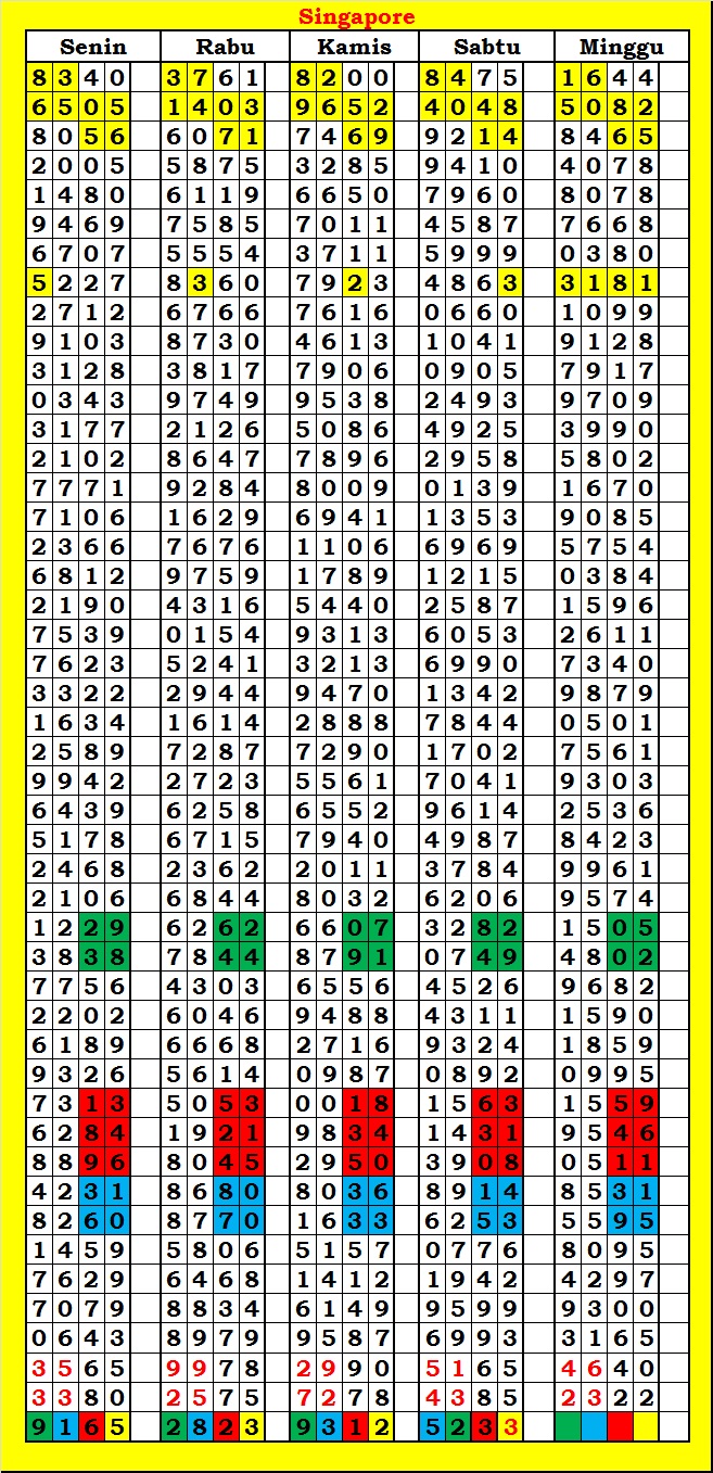 MASTER SINGAPURA Kamis, 19-02-2026 Merupakan Prediksi Otomatis yang menggabungkan Metode Kalender Togel Dengan Rumus-rumus kontrol yang sudah terbukti keakuratanya.Gunakan Aplikasi Rekap untuk mendapatkan LN TOP. Harap Maklum Jika kadang meleset MASTER SINGAPURA kita. Jadikan ini sebagai perbandingan saja dan tetap UPS
