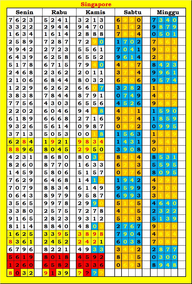 MASTER SINGAPURA Kamis, 19-02-2026 Merupakan Prediksi Otomatis yang menggabungkan Metode Kalender Togel Dengan Rumus-rumus kontrol yang sudah terbukti keakuratanya.Gunakan Aplikasi Rekap untuk mendapatkan LN TOP. Harap Maklum Jika kadang meleset MASTER SINGAPURA kita. Jadikan ini sebagai perbandingan saja dan tetap UPS
