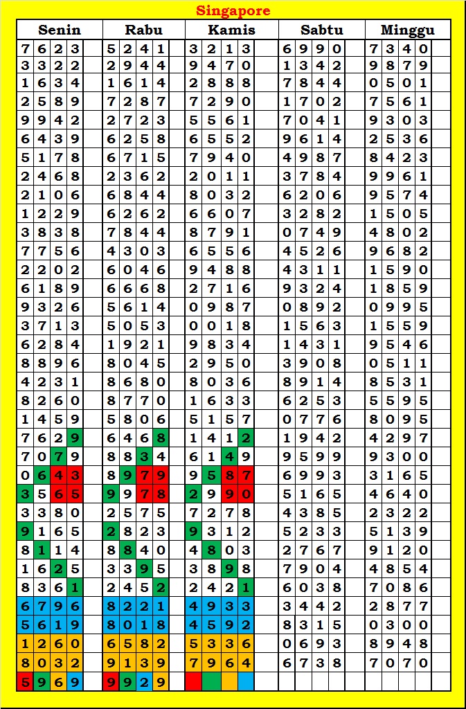 MASTER SINGAPURA Kamis, 19-02-2026 Merupakan Prediksi Otomatis yang menggabungkan Metode Kalender Togel Dengan Rumus-rumus kontrol yang sudah terbukti keakuratanya.Gunakan Aplikasi Rekap untuk mendapatkan LN TOP. Harap Maklum Jika kadang meleset MASTER SINGAPURA kita. Jadikan ini sebagai perbandingan saja dan tetap UPS