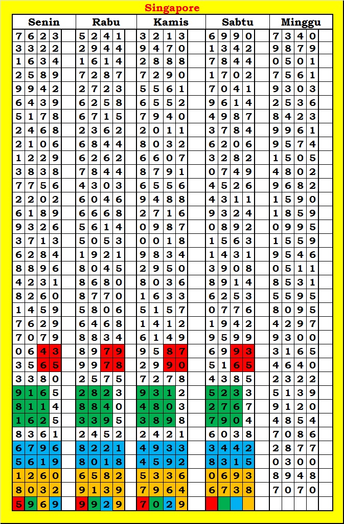 MASTER SINGAPURA Kamis, 19-02-2026 Merupakan Prediksi Otomatis yang menggabungkan Metode Kalender Togel Dengan Rumus-rumus kontrol yang sudah terbukti keakuratanya.Gunakan Aplikasi Rekap untuk mendapatkan LN TOP. Harap Maklum Jika kadang meleset MASTER SINGAPURA kita. Jadikan ini sebagai perbandingan saja dan tetap UPS