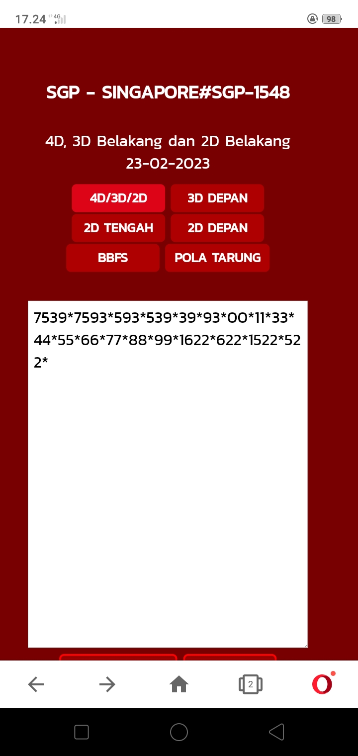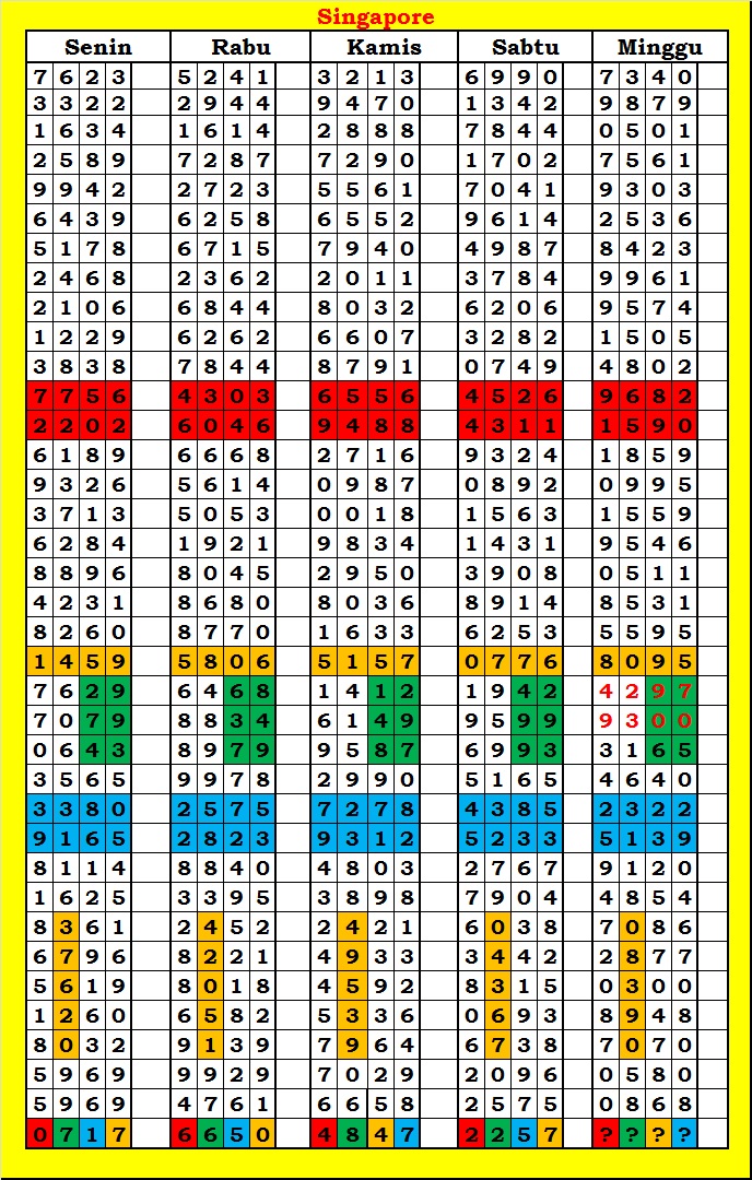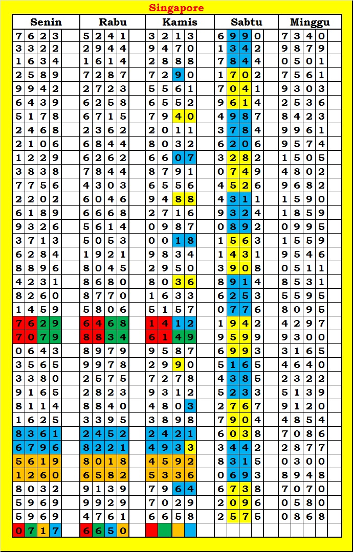 MASTER SINGAPURA Kamis, 19-02-2026 Merupakan Prediksi Otomatis yang menggabungkan Metode Kalender Togel Dengan Rumus-rumus kontrol yang sudah terbukti keakuratanya.Gunakan Aplikasi Rekap untuk mendapatkan LN TOP. Harap Maklum Jika kadang meleset MASTER SINGAPURA kita. Jadikan ini sebagai perbandingan saja dan tetap UPS