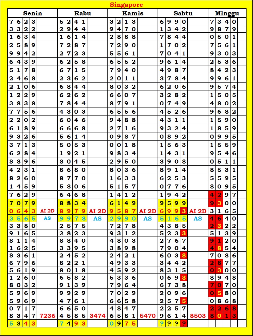 MASTER SINGAPURA Kamis, 19-02-2026 Merupakan Prediksi Otomatis yang menggabungkan Metode Kalender Togel Dengan Rumus-rumus kontrol yang sudah terbukti keakuratanya.Gunakan Aplikasi Rekap untuk mendapatkan LN TOP. Harap Maklum Jika kadang meleset MASTER SINGAPURA kita. Jadikan ini sebagai perbandingan saja dan tetap UPS