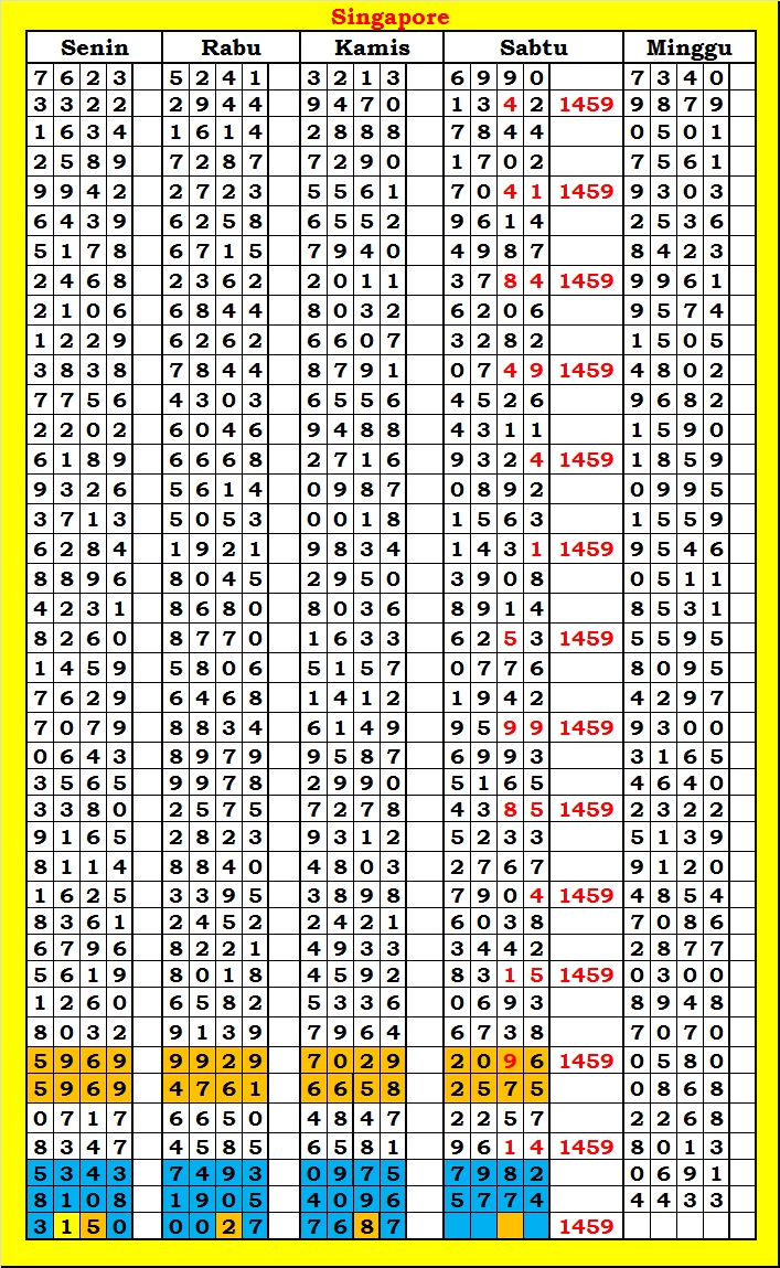 MASTER SINGAPURA Kamis, 19-02-2026 Merupakan Prediksi Otomatis yang menggabungkan Metode Kalender Togel Dengan Rumus-rumus kontrol yang sudah terbukti keakuratanya.Gunakan Aplikasi Rekap untuk mendapatkan LN TOP. Harap Maklum Jika kadang meleset MASTER SINGAPURA kita. Jadikan ini sebagai perbandingan saja dan tetap UPS