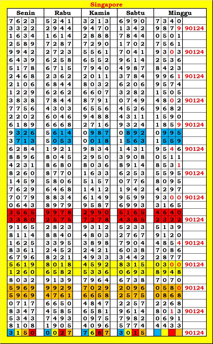 MASTER SINGAPURA Kamis, 19-02-2026 Merupakan Prediksi Otomatis yang menggabungkan Metode Kalender Togel Dengan Rumus-rumus kontrol yang sudah terbukti keakuratanya.Gunakan Aplikasi Rekap untuk mendapatkan LN TOP. Harap Maklum Jika kadang meleset MASTER SINGAPURA kita. Jadikan ini sebagai perbandingan saja dan tetap UPS