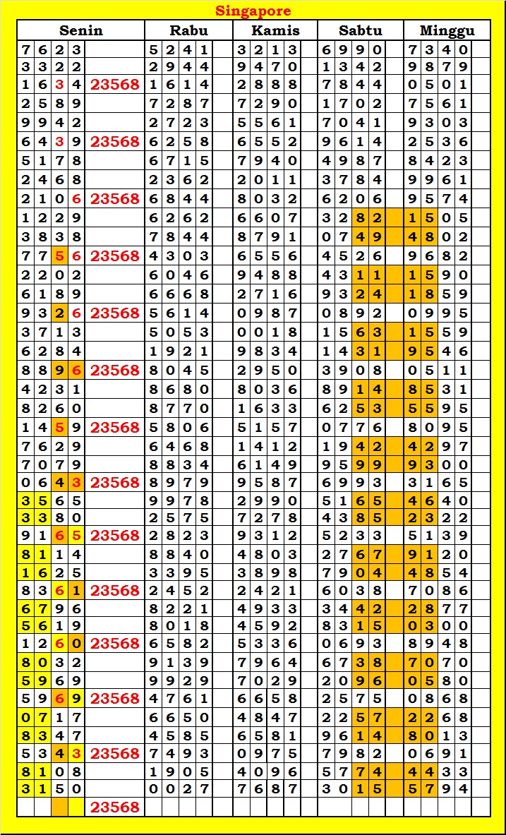 MASTER SINGAPURA Kamis, 19-02-2026 Merupakan Prediksi Otomatis yang menggabungkan Metode Kalender Togel Dengan Rumus-rumus kontrol yang sudah terbukti keakuratanya.Gunakan Aplikasi Rekap untuk mendapatkan LN TOP. Harap Maklum Jika kadang meleset MASTER SINGAPURA kita. Jadikan ini sebagai perbandingan saja dan tetap UPS