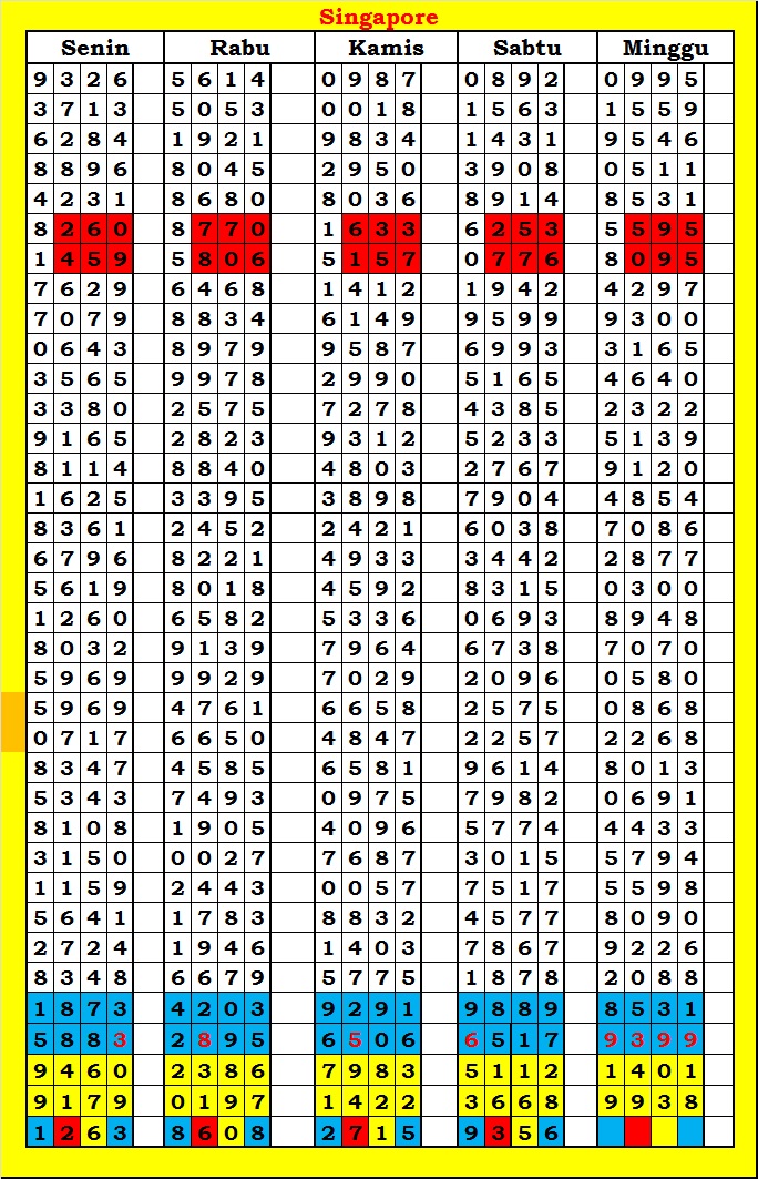 MASTER SINGAPURA Senin, 16-02-2026 Merupakan Prediksi Otomatis yang menggabungkan Metode Kalender Togel Dengan Rumus-rumus kontrol yang sudah terbukti keakuratanya.Gunakan Aplikasi Rekap untuk mendapatkan LN TOP. Harap Maklum Jika kadang meleset MASTER SINGAPURA kita. Jadikan ini sebagai perbandingan saja dan tetap UPS