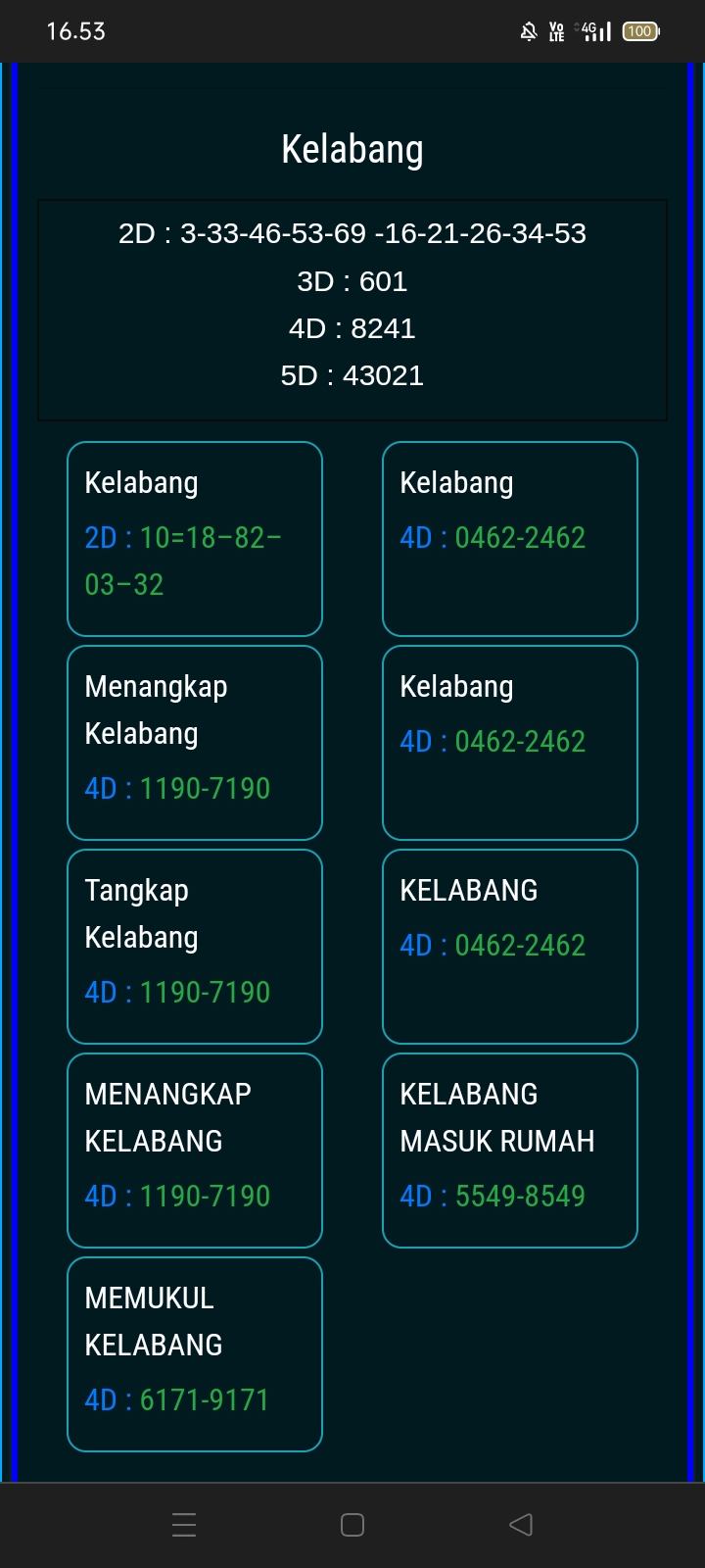 Prediksi Ini Berubah secara otomatis sesuai hari dan result pasaran masing-masing. Untuk melihat prediksi sebelumnya klik tombol nomor hitam diatas