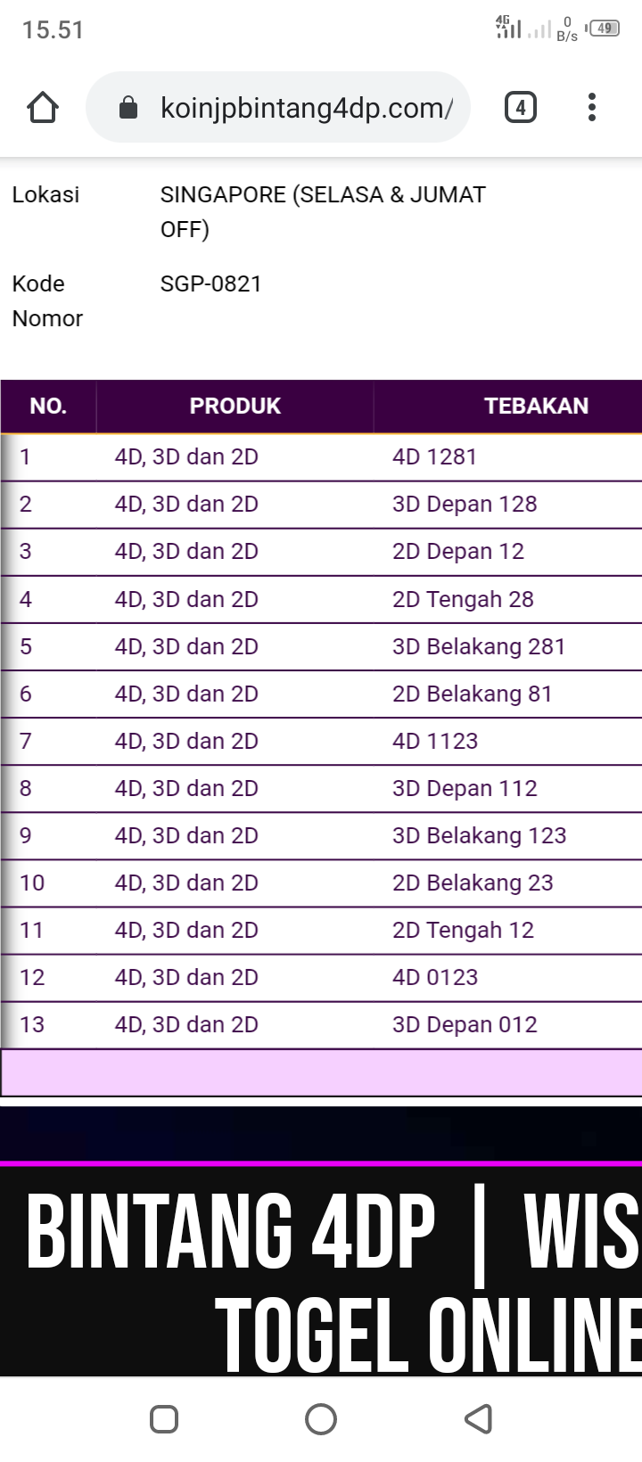 MASTER SINGAPURA Senin, 16-02-2026 Merupakan Prediksi Otomatis yang menggabungkan Metode Kalender Togel Dengan Rumus-rumus kontrol yang sudah terbukti keakuratanya.Gunakan Aplikasi Rekap untuk mendapatkan LN TOP. Harap Maklum Jika kadang meleset MASTER SINGAPURA kita. Jadikan ini sebagai perbandingan saja dan tetap UPS