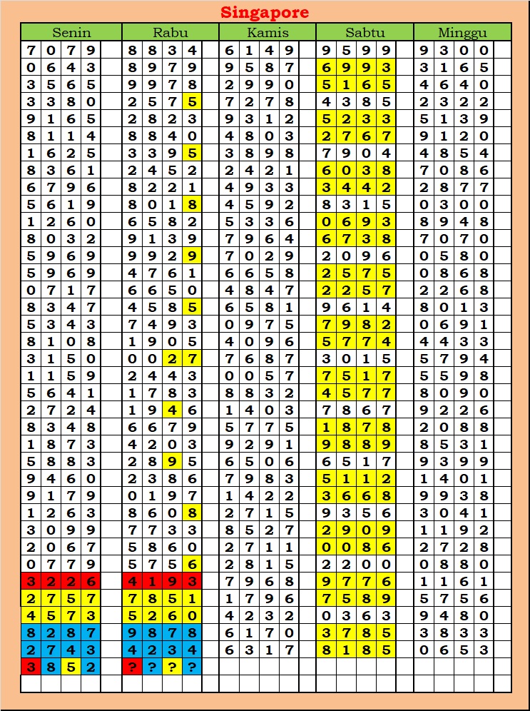 MASTER SINGAPURA Minggu, 15-02-2026 Merupakan Prediksi Otomatis yang menggabungkan Metode Kalender Togel Dengan Rumus-rumus kontrol yang sudah terbukti keakuratanya.Gunakan Aplikasi Rekap untuk mendapatkan LN TOP. Harap Maklum Jika kadang meleset MASTER SINGAPURA kita. Jadikan ini sebagai perbandingan saja dan tetap UPS