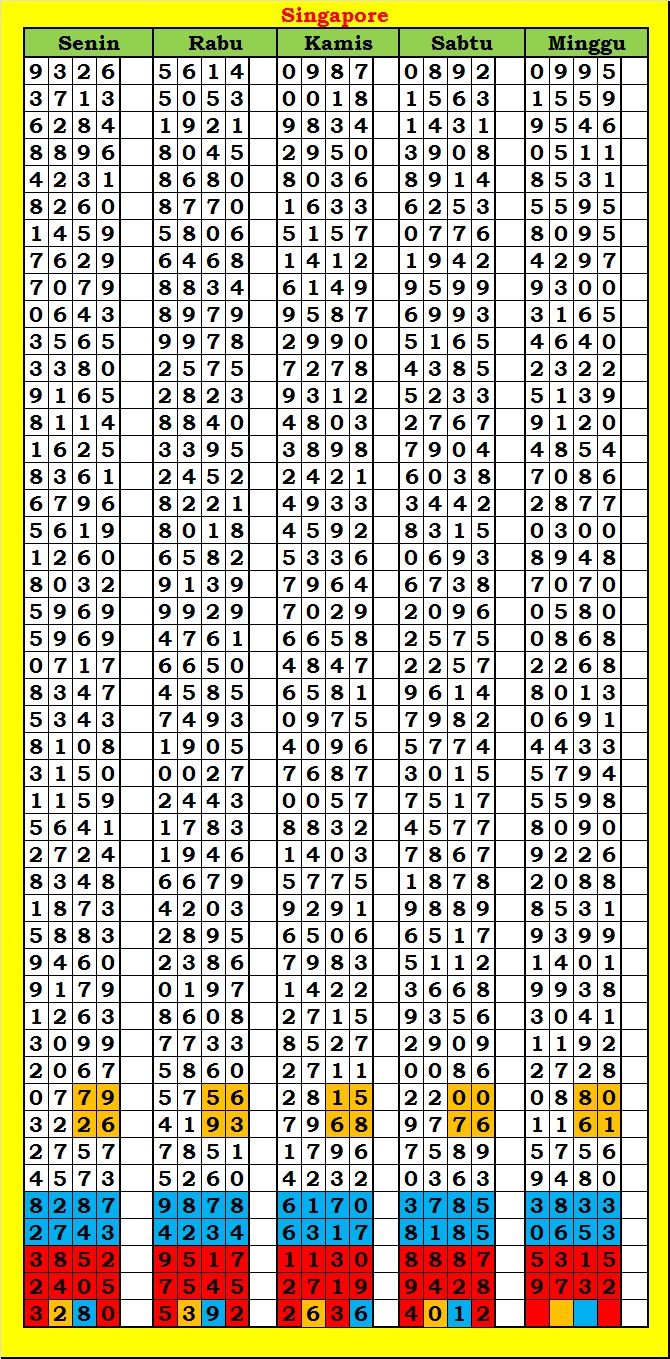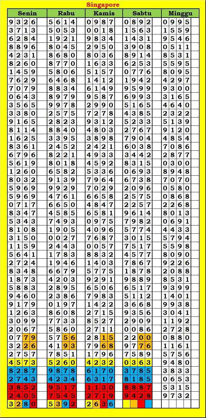 MASTER SINGAPURA Minggu, 15-02-2026 Merupakan Prediksi Otomatis yang menggabungkan Metode Kalender Togel Dengan Rumus-rumus kontrol yang sudah terbukti keakuratanya.Gunakan Aplikasi Rekap untuk mendapatkan LN TOP. Harap Maklum Jika kadang meleset MASTER SINGAPURA kita. Jadikan ini sebagai perbandingan saja dan tetap UPS