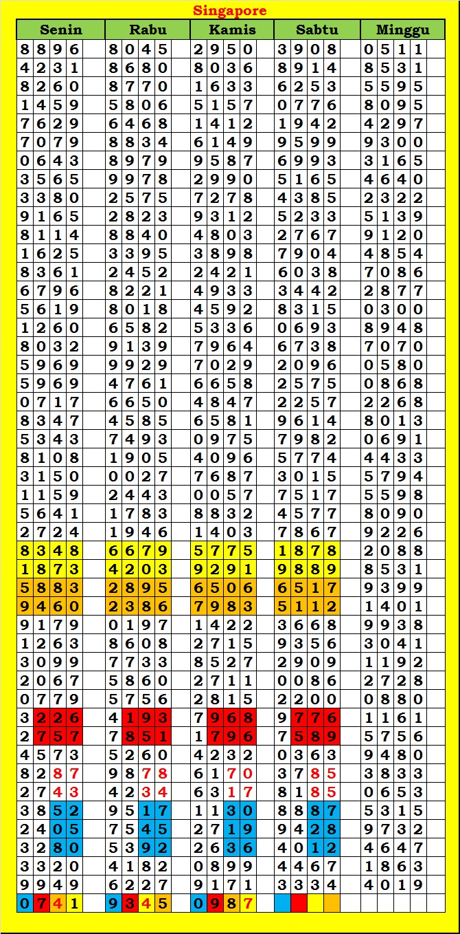 MASTER SINGAPURA Minggu, 15-02-2026 Merupakan Prediksi Otomatis yang menggabungkan Metode Kalender Togel Dengan Rumus-rumus kontrol yang sudah terbukti keakuratanya.Gunakan Aplikasi Rekap untuk mendapatkan LN TOP. Harap Maklum Jika kadang meleset MASTER SINGAPURA kita. Jadikan ini sebagai perbandingan saja dan tetap UPS
