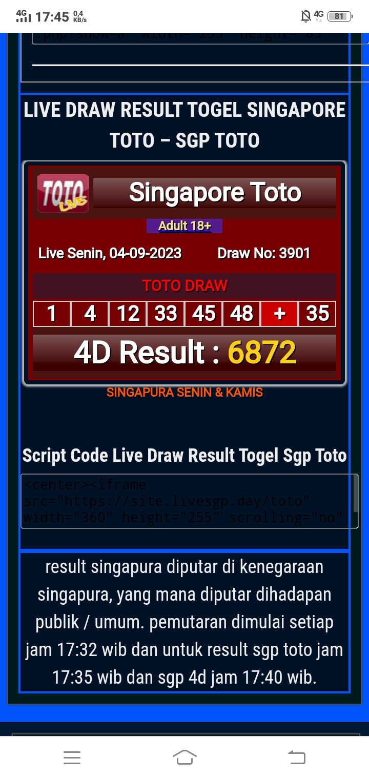 LIVE DRAW RESULT SINGAPOREPOOLS ( Klik Disini )