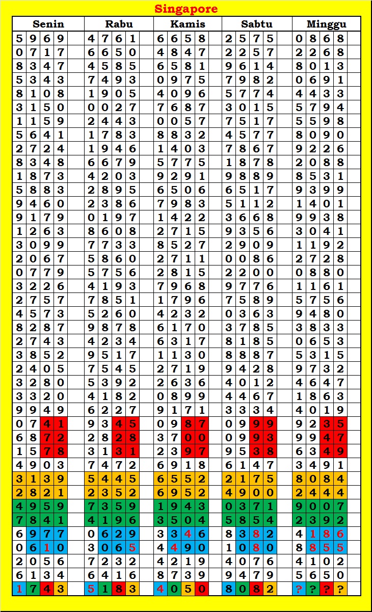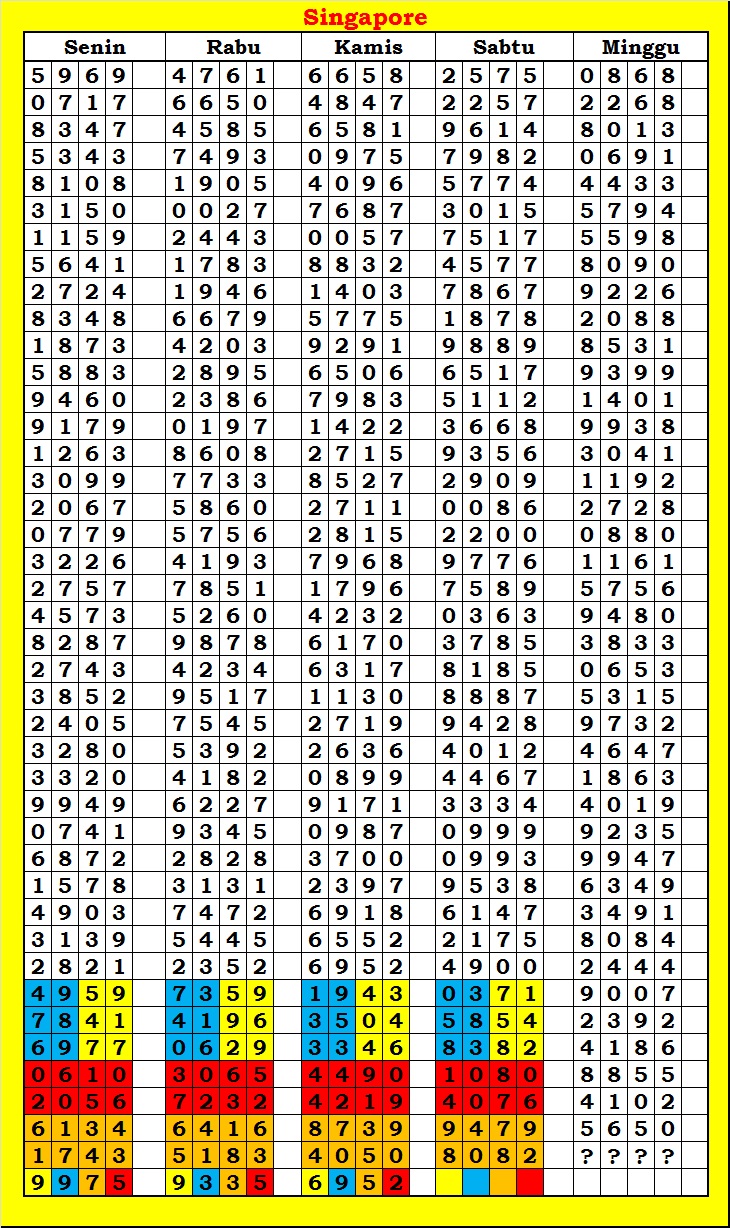MASTER SINGAPURA Sabtu, 14-02-2026 Merupakan Prediksi Otomatis yang menggabungkan Metode Kalender Togel Dengan Rumus-rumus kontrol yang sudah terbukti keakuratanya.Gunakan Aplikasi Rekap untuk mendapatkan LN TOP. Harap Maklum Jika kadang meleset MASTER SINGAPURA kita. Jadikan ini sebagai perbandingan saja dan tetap UPS
