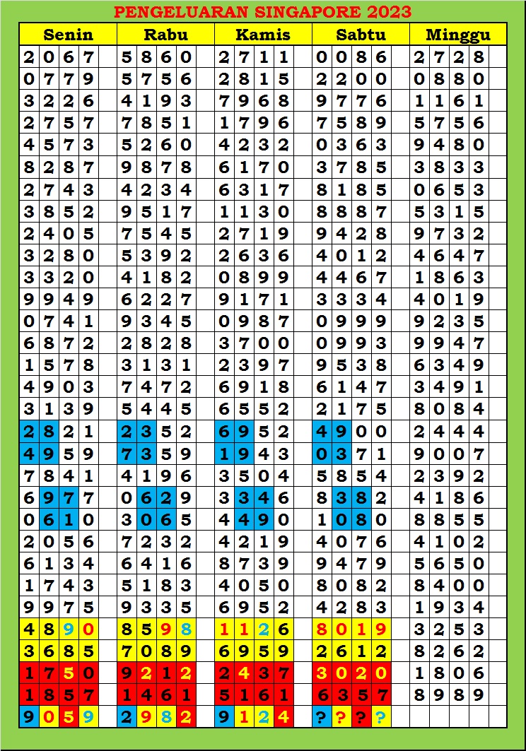 MASTER SINGAPURA Sabtu, 14-02-2026 Merupakan Prediksi Otomatis yang menggabungkan Metode Kalender Togel Dengan Rumus-rumus kontrol yang sudah terbukti keakuratanya.Gunakan Aplikasi Rekap untuk mendapatkan LN TOP. Harap Maklum Jika kadang meleset MASTER SINGAPURA kita. Jadikan ini sebagai perbandingan saja dan tetap UPS