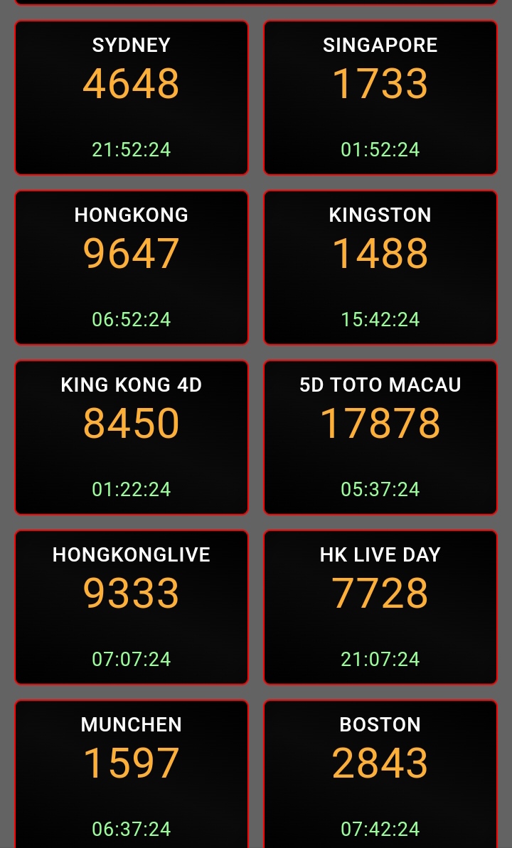 Prediksi Ini Berubah secara otomatis sesuai hari dan result pasaran masing-masing. Untuk melihat prediksi sebelumnya klik tombol nomor hitam diatas