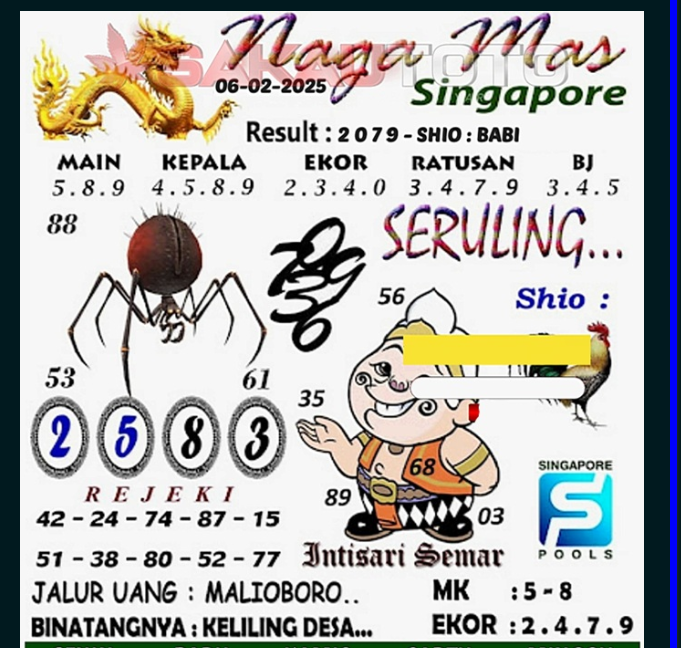 MASTER SINGAPURA Rabu, 11-02-2026 Merupakan Prediksi Otomatis yang menggabungkan Metode Kalender Togel Dengan Rumus-rumus kontrol yang sudah terbukti keakuratanya.Gunakan Aplikasi Rekap untuk mendapatkan LN TOP. Harap Maklum Jika kadang meleset MASTER SINGAPURA kita. Jadikan ini sebagai perbandingan saja dan tetap UPS